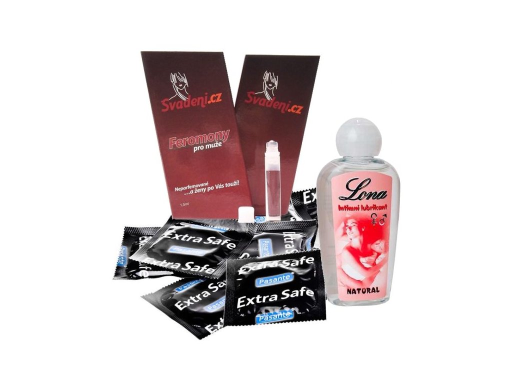 Set se skládá z Feromonů pro může 1,5 ml, lubrikačního gelu s vůní 130ml dle vlastního výběru (netýká se Tenga Egg lotion), a 3x kondom dle vlastního výběru.